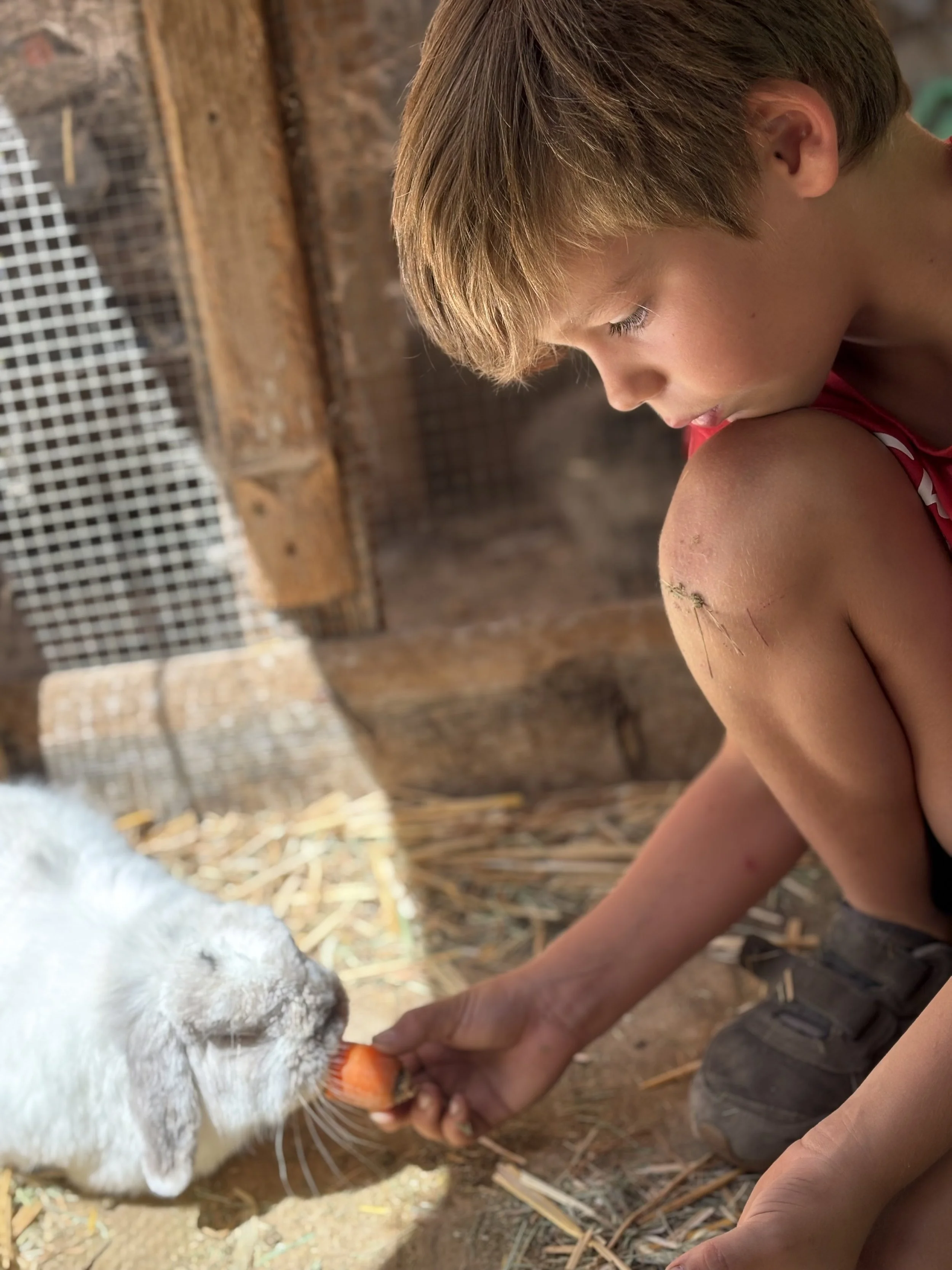 Vacations should be about gentle mornings, so drop off happens between 8:30 and 9:00. (Early birds can help with the farm animal morning routine.)